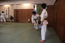 稽古中にはペアーやグループを組んでを行動することが多く、まずは『 お願いします! 』と自ら進んで相手を探すことを心掛けます。自分の我や好き嫌いを無くしていろいろな相手とも歩調を合わせられるようになることが人との調和の第一歩です。そして相手の気持ち・感じ方を尊重し、互いの好意が合致したときに『 合気道 』になります。
